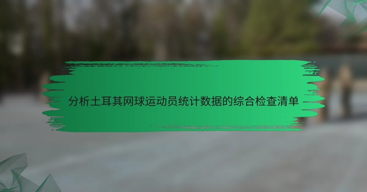 分析土耳其网球运动员的统计数据需要全面理解关键指标,如比赛胜率、发球局统计和破发点转化率。通过解读这些统计数据,可以揭示运动员的优缺点,从而更准确地评估他们的表现。利用专业工具和数据库可以进一步增强这种分析,确保正确的指标得到背景化,并有效识别趋势。